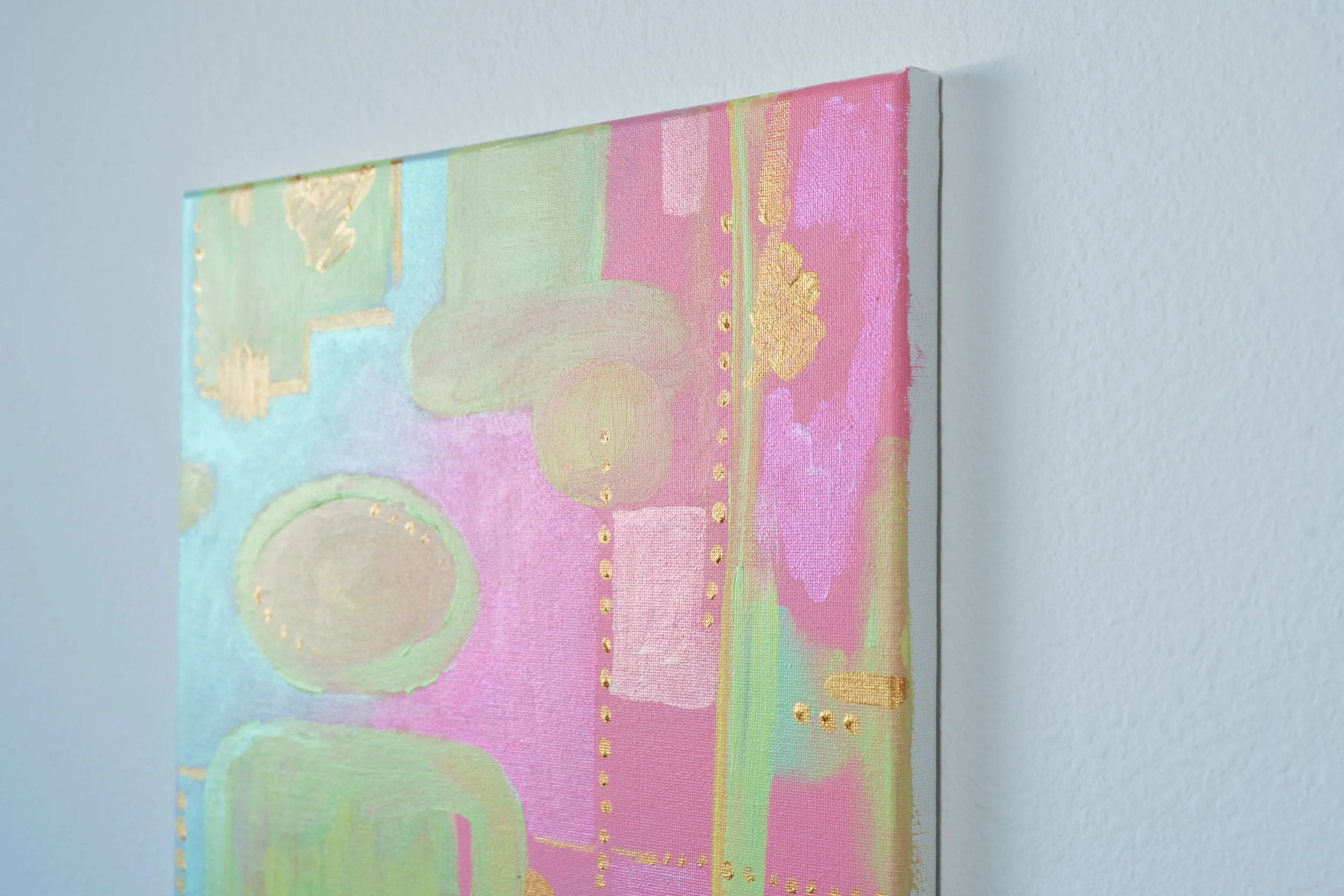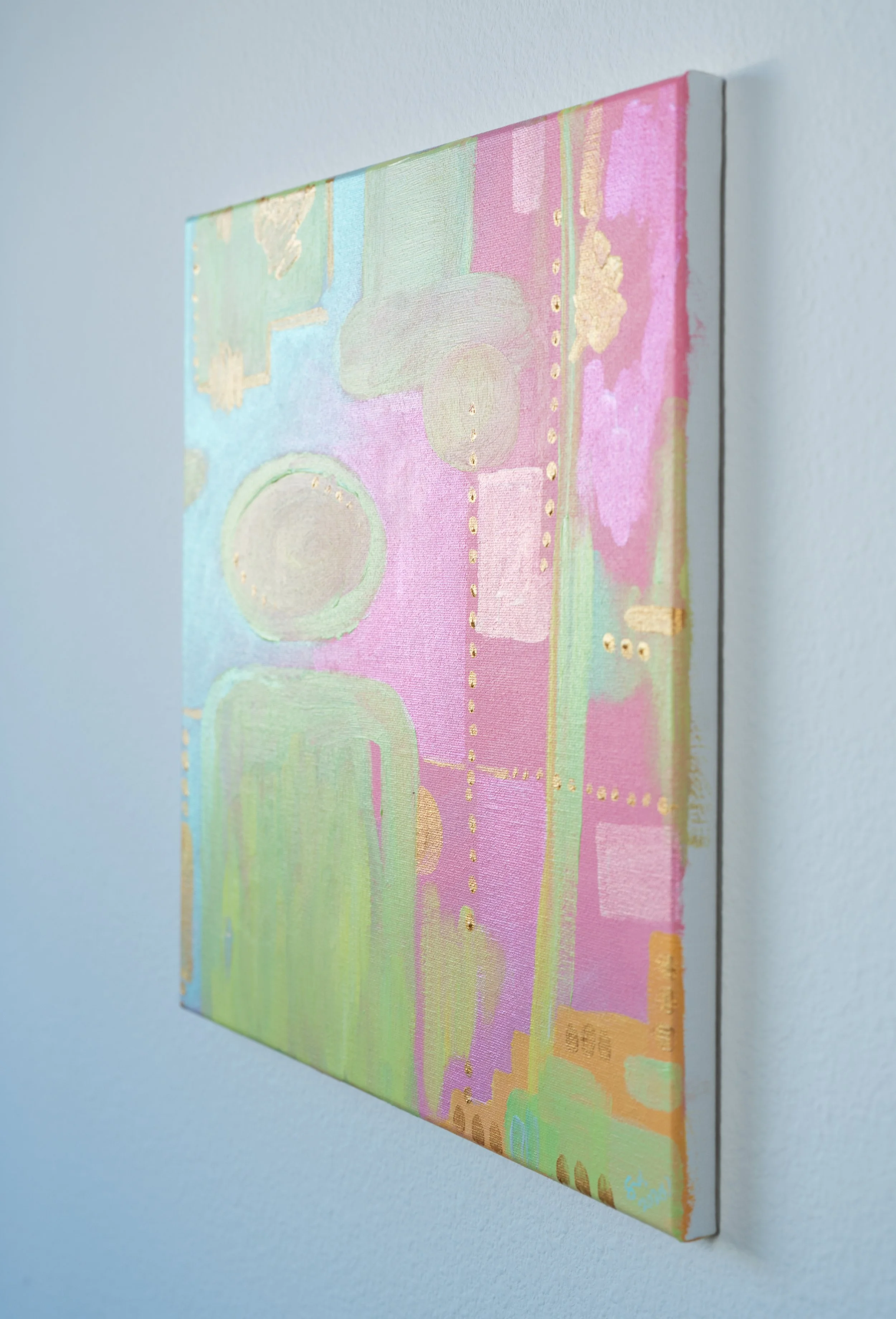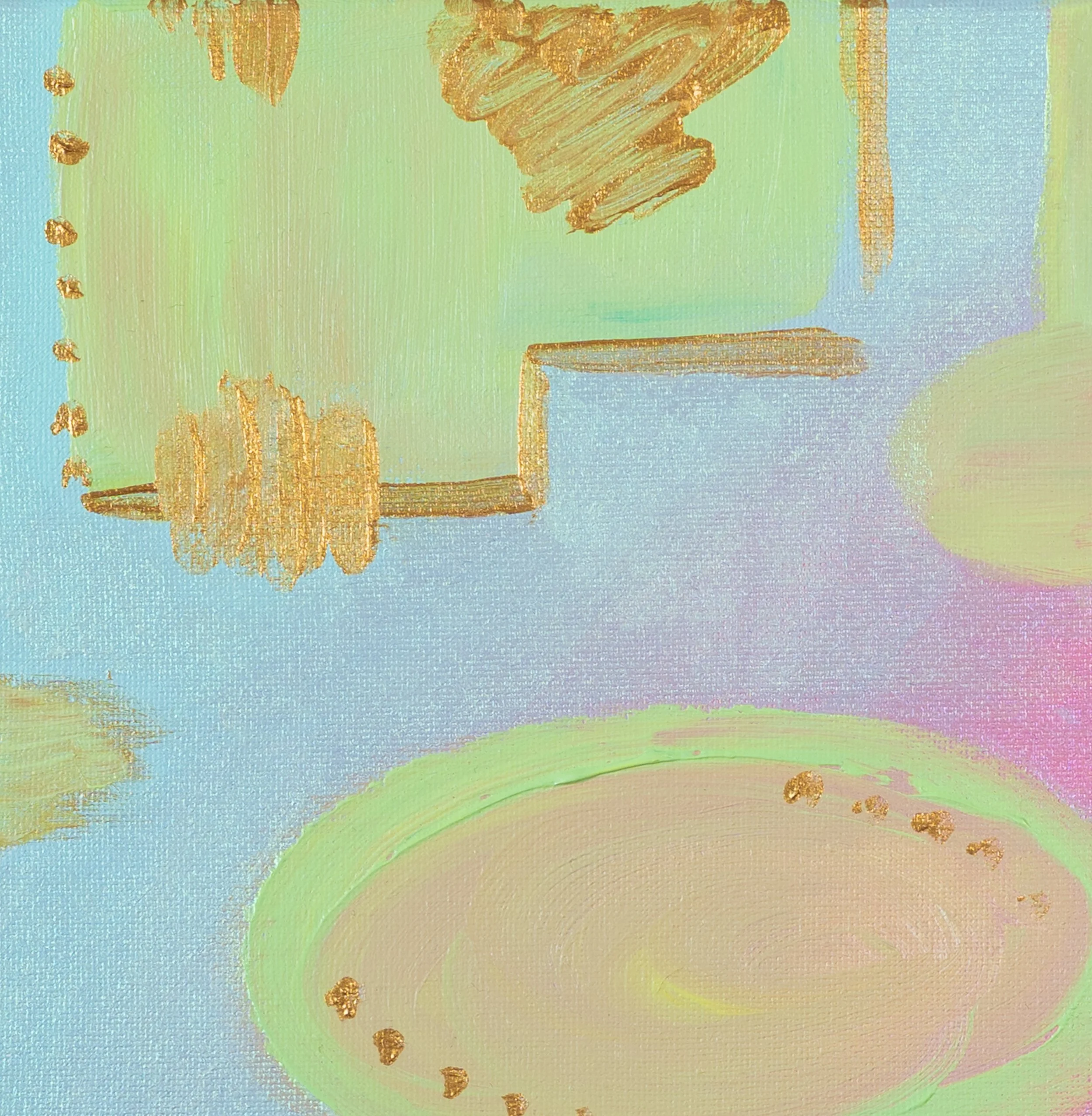 Gold and iridescent paints create a glimmer that shifts with the viewer's perspective.