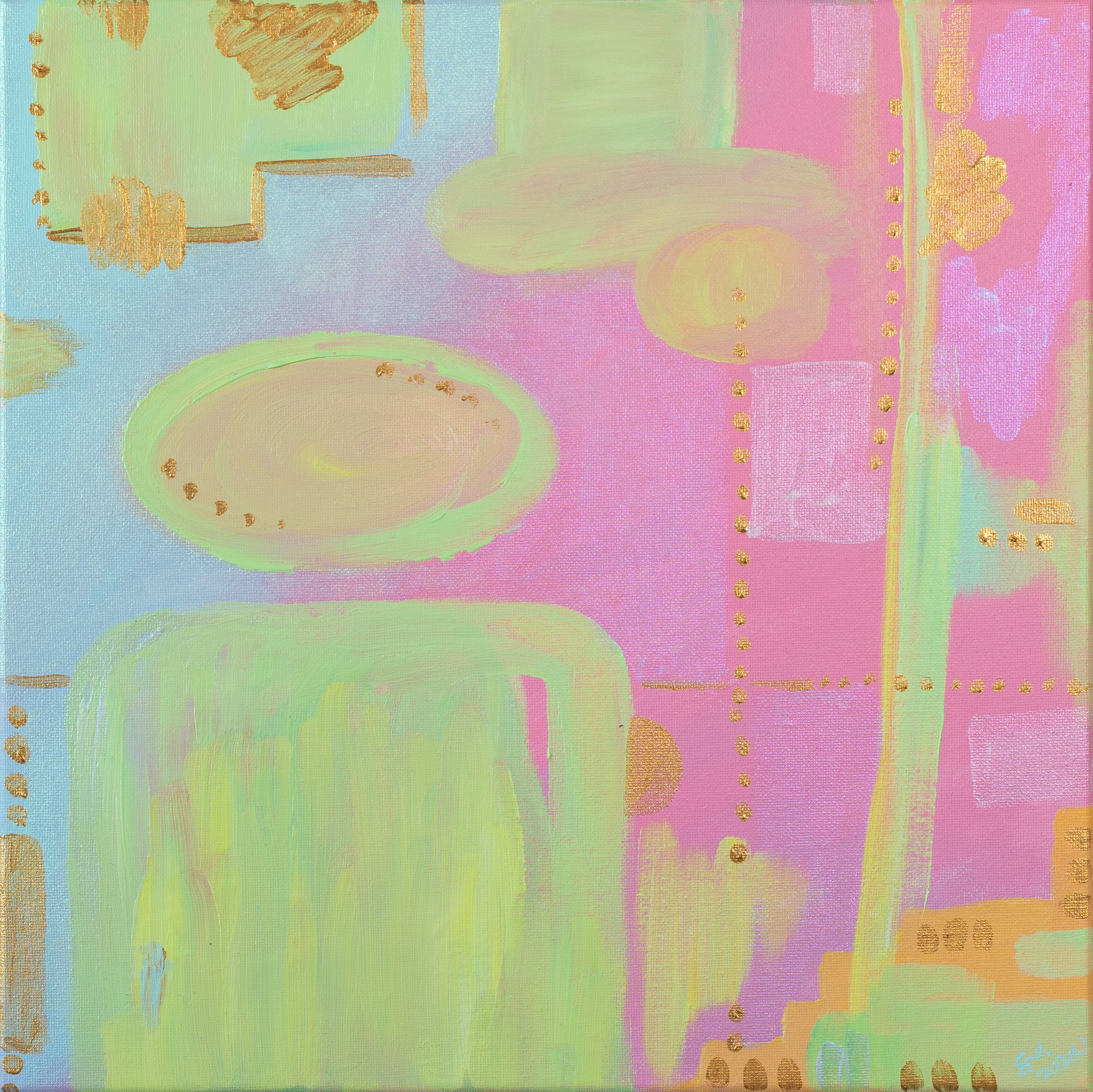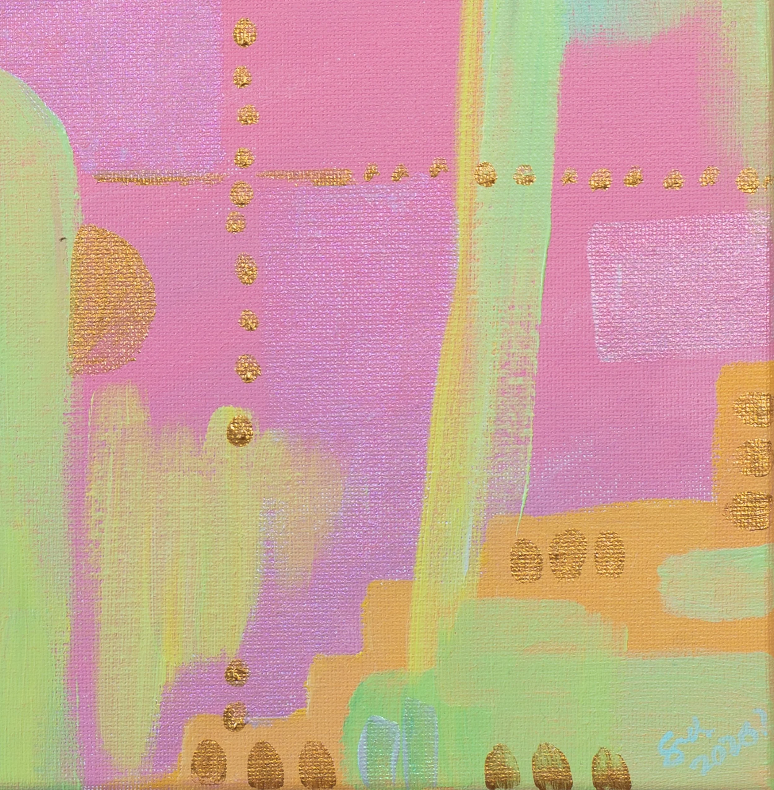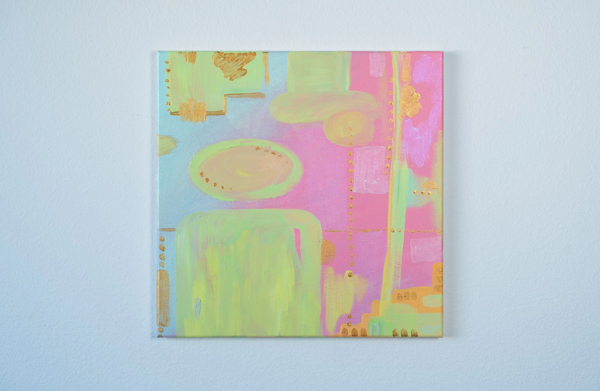 Gold and iridescent paints create a glimmer that shifts with the viewer's perspective.