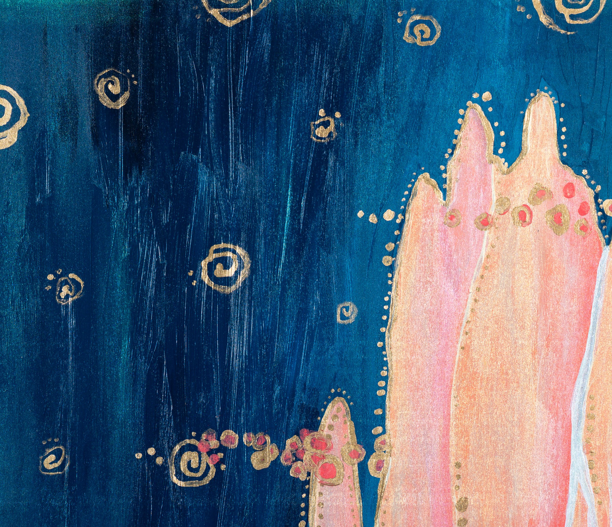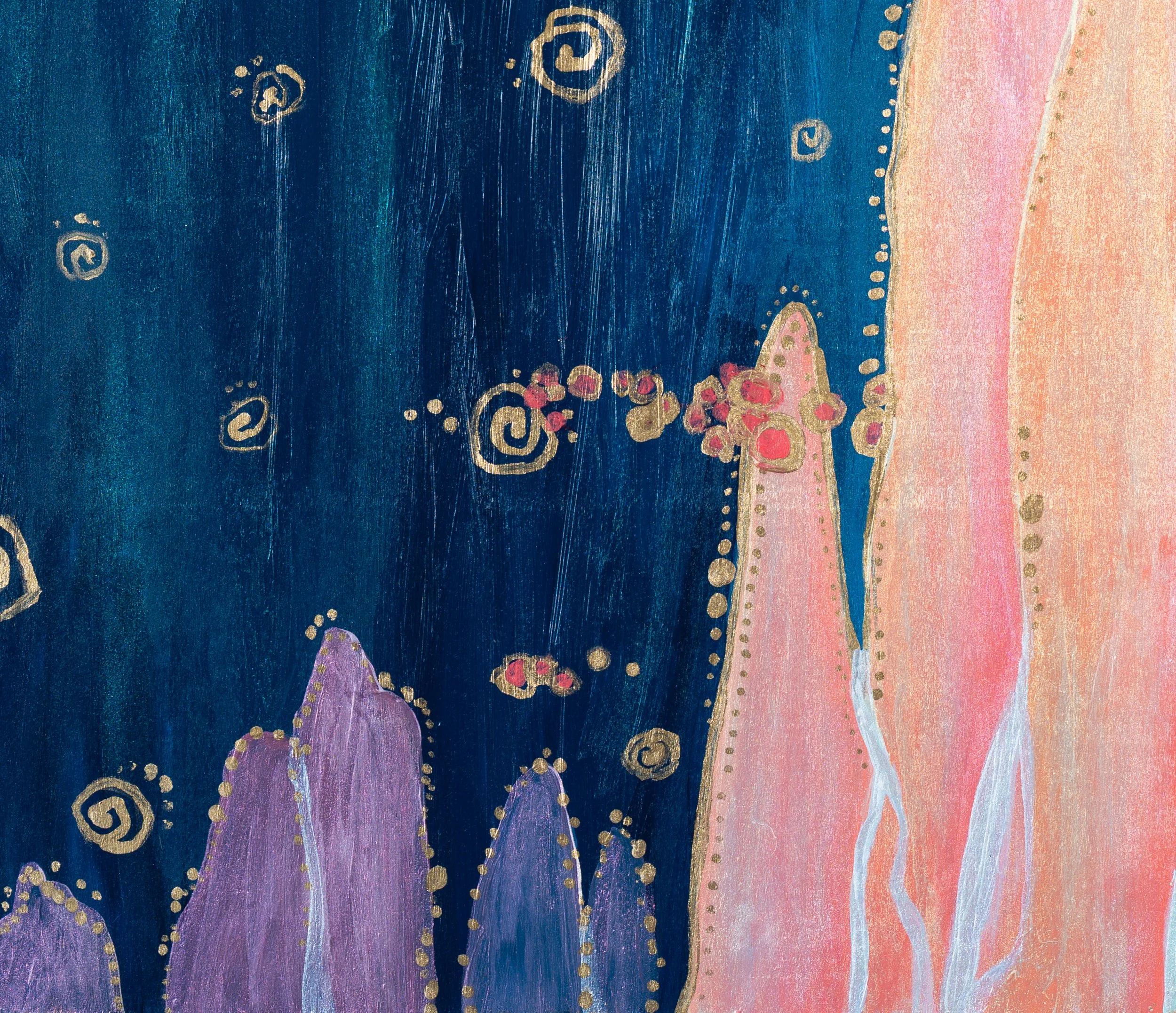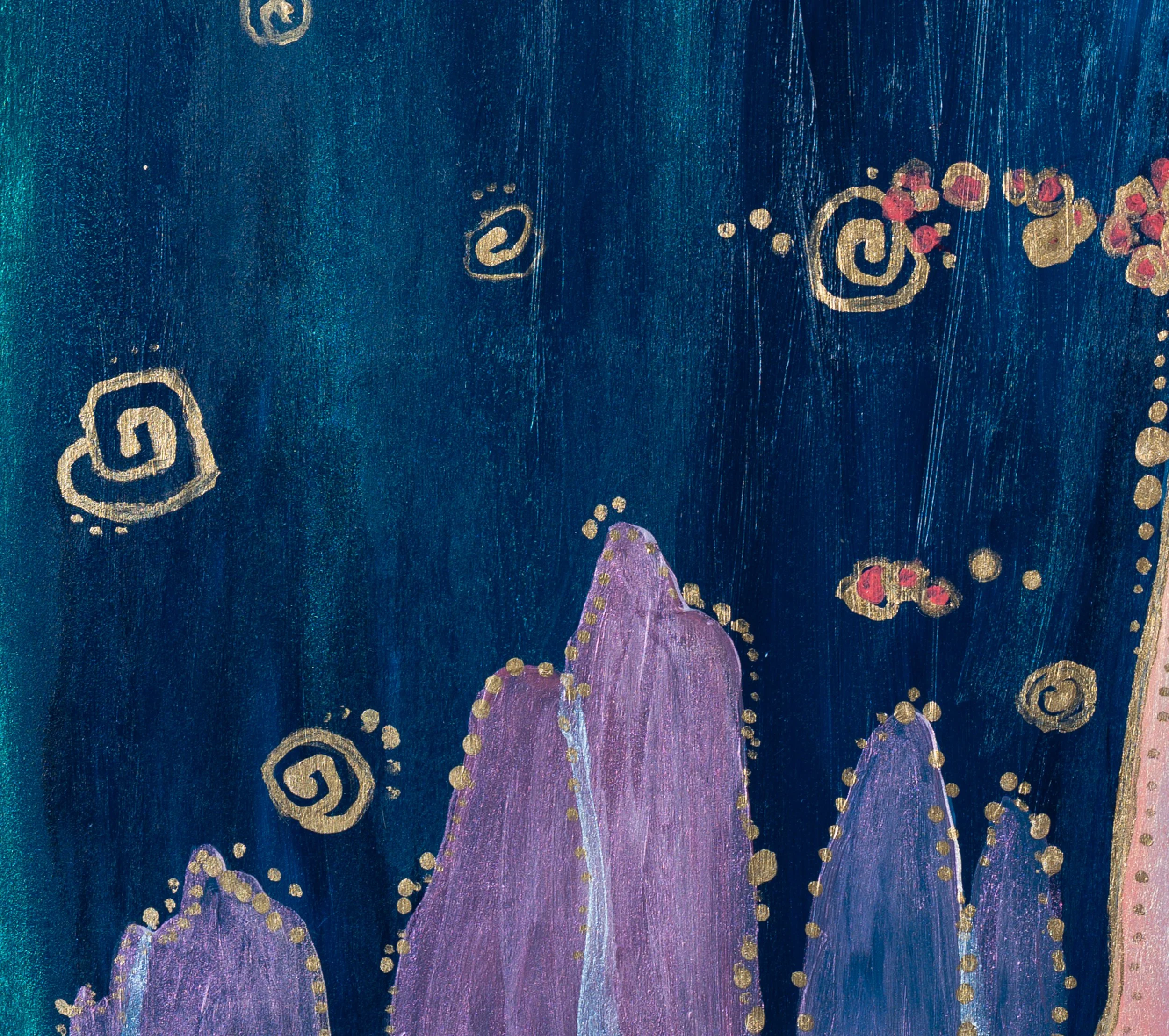 Accented with gold and iridescent paint that shifts with the light.